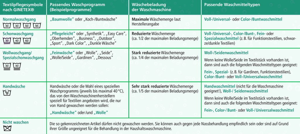 Eine Zuordnung zu dem jeweiligen Waschprogramm bei der Waschmaschine findet Ihr in dieser Übersichtstabelle mit Waschhinweisen.