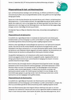 ➤ Information “Pflegeempfehlung für Spül- und Waschmaschinen”