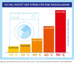 Der relativ hohe Anteil des Energieverbrauchs beim Wäschewaschen kommt hauptsächlich durch das Aufheizen der Waschlauge zustande. Eine Reduzierung der Waschtemperatur schont somit die Umwelt und entlastet gleichzeitig die Geldbörse der Verbraucher.