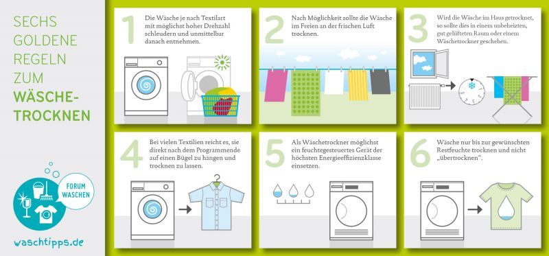 Damit Sie beim Wäschewaschen und Wäschetrocknen ein möglichst gutes Ergebnis erzielen und die Umwelt sowie Ihren Geldbeutel schonen, finden Sie hier 12 wichtige Grundregeln zum Wäschewaschen und zum Wäschetrocknen.