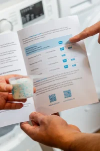 Auch die Dosierung des Waschmittels ist wichtig. Zu wenig Waschmittel führt zu einer zu geringen Enthärtung des Wassers, was dazu führen kann, dass die Wäsche mit der Zeit hart wird, da sich die Härtebildner auch in der Wäsche ablagern.